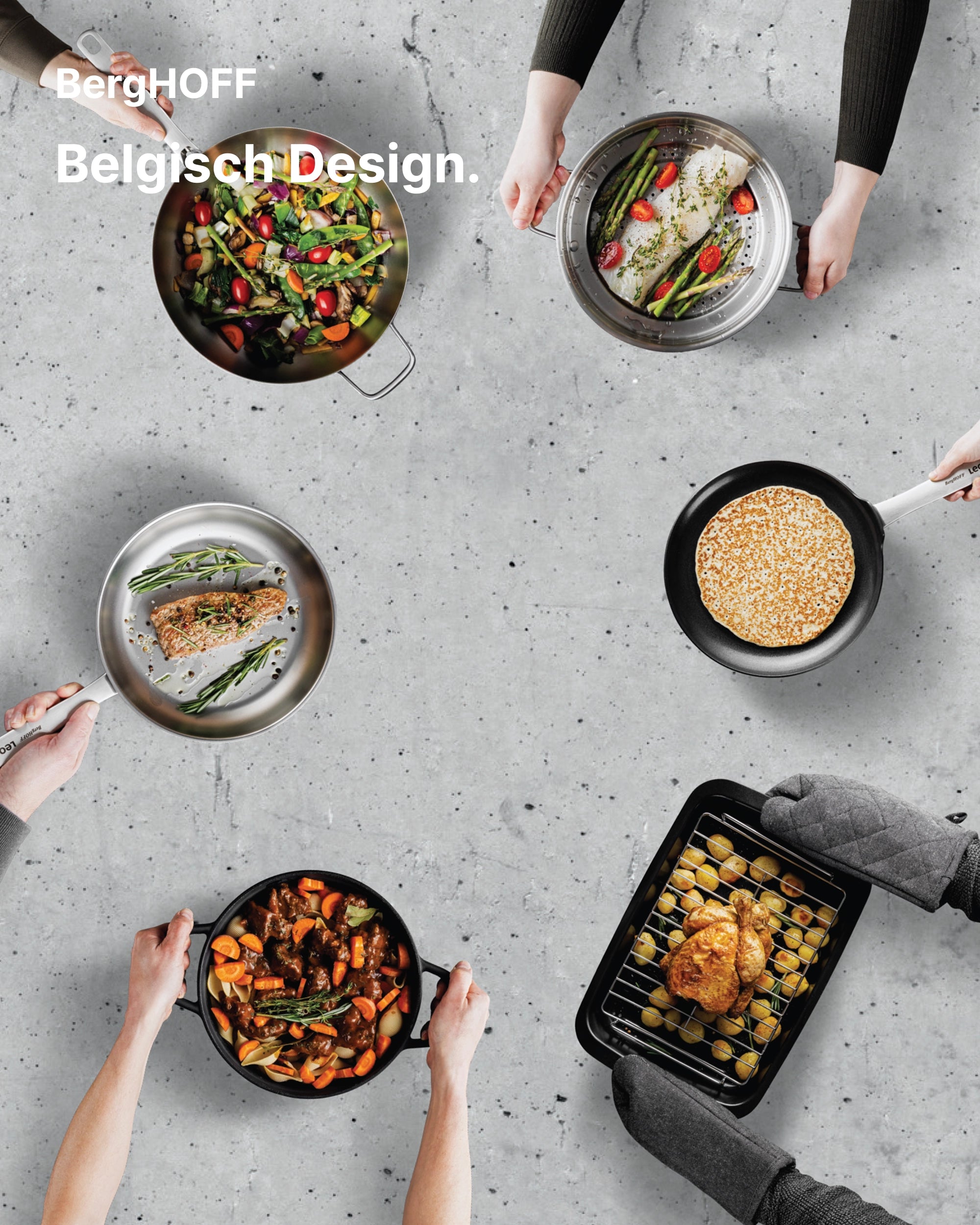 Je vous présente: BergHOFF. Dit Belgisch design combineert Franse elegantie met Duitse Gründlichkeit. Dit resulteert in award-winning productdesigns met innovatieve features. Het beste van twee werelden, met veel aandacht voor duurzaamheid.