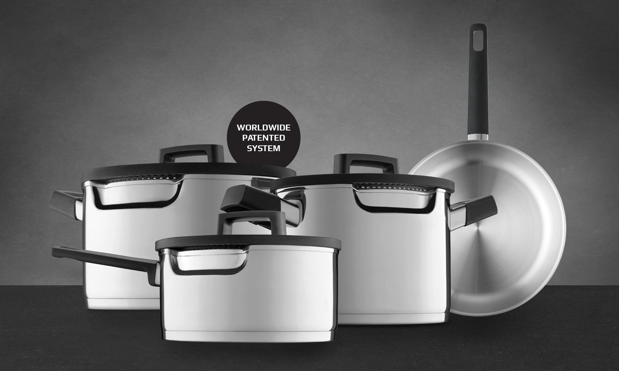 Deze 6-delige pannenset bevat een steelpan (20 cm, 2.8L) en kookpotten (20 cm, 4.2L en 24 cm, 5.7L). De glazen deksels met geïntegreerde luchtkanalen kunnen 180 graden worden gedraaid om de pannen af te sluiten en zijn speciaal ontworpen voor downdraft systemen. Geschikt voor alle kookplaten. Na gebruik blijven er geen geurtjes hangen. Vaatwasbestendig.